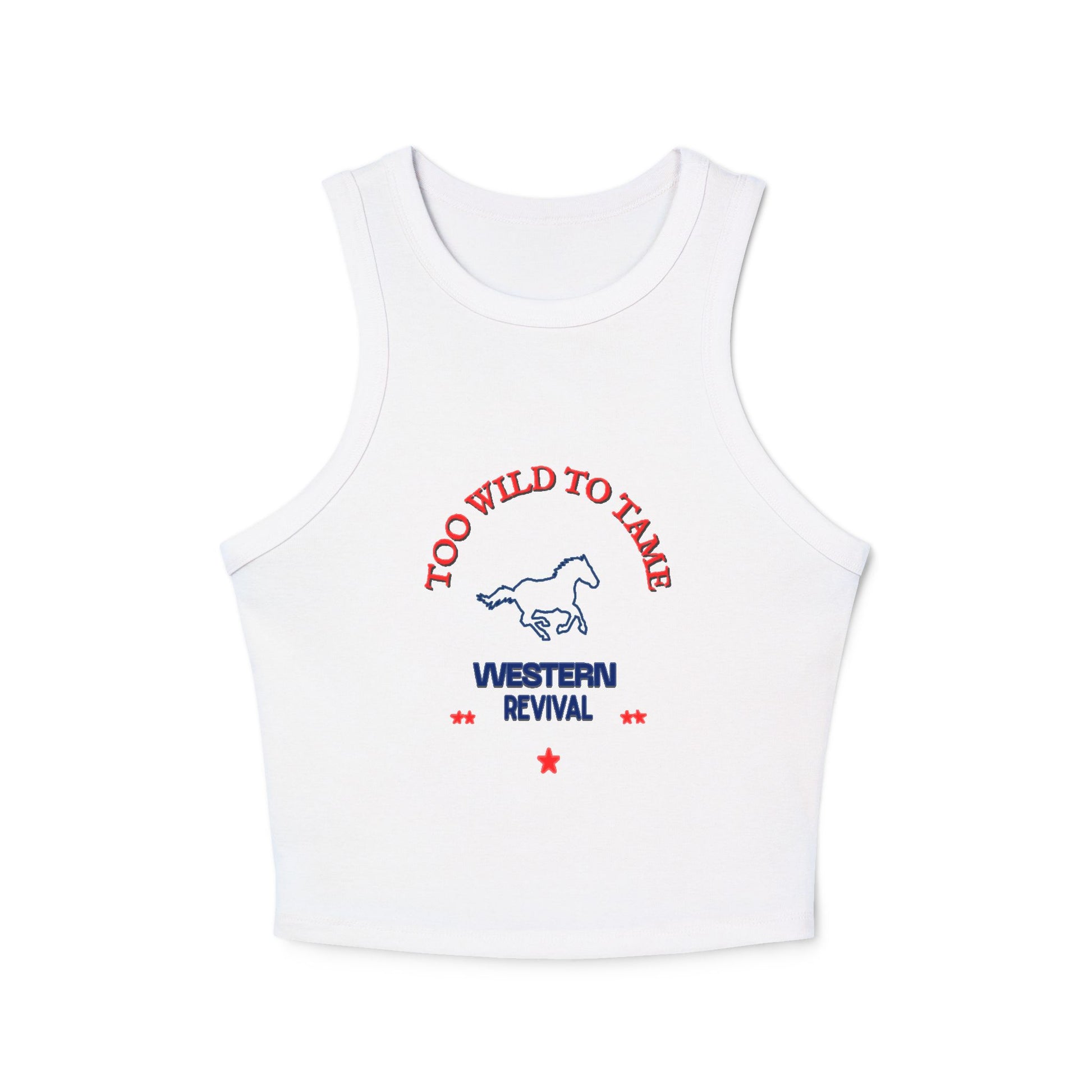 Boho Women's Racer Tank Top - 'Too Wild to Tame' Design